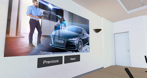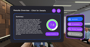 Practice in a wide range of self-paced VR scenarios, from a press conference to a meeting room. You can also take guided training sessions to improve your skills in specific topics.