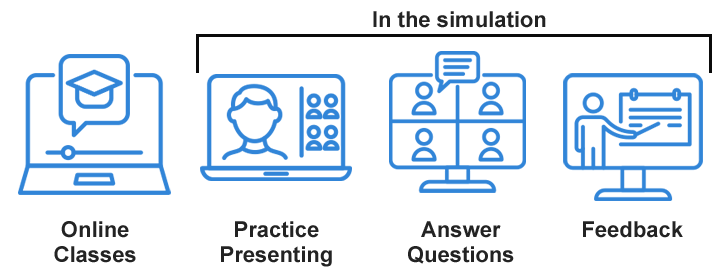 After learning the theory, you'll have the unique opportunity to practice, improve and build your confidence in the virtual presentation exercise.
